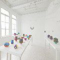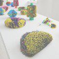 (色とりどりのビニールテープやごく薄の布を熱着処理した作品)