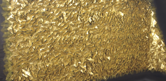 金箔を多用し、空の幔幕のような作品をつくりたかった。