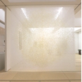 自作の大きなテーマは「布にひそむ表情をひきだす」だ。一枚の布を幾重にも祈り重ね、うちにひそむ、うごめきを抱く袋を制作した。はたしてなんと言う袋だろうか?