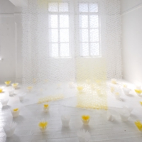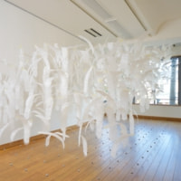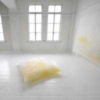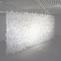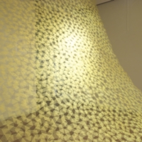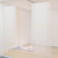 -布にひそむ表情をひきだす- という制作意図のもと、同素材で約18年制作を続けている。一枚の布の可能性がどこまであるか、そして自身の創作力がどこまでかを確かめるように一つの素材にこだわり制作を続けている。他の素材に魅力を感じる時もあるが、もう少し続けようと考えている。 タイトルのORIKATAは、紙を折って物を包む日本の礼儀作法からきているが、そのような様式にとらわれず、折りたたむ・折り重ねることで、効果的に極薄布の表情の変化をいかすことをめざしている。 時には染色行為をほどこすが、その場合は「黄」を用いる。色には様々な意味があるらしいが、私の場合は光を色にしたら「黄」になる。