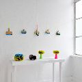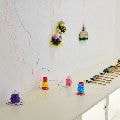 素敵な色の糸巻きコーンがたくさんあった。ラップフィルムの芯、CDを重ねる芯、粘着カーペットクリーナーの芯…それらの芯もコーンというのだろか、ただの紙菅というのだろうか、なくてはならないが、使い終わったらゴミになる。そんな芯や、毛が抜け落ちた刷毛の柄を、使い捨てられるビニールテープで彩った。