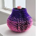 (布の経糸・緯糸を引っ張り、引く糸の緊張差で布の表情を変化、あるいは立体化する作品)