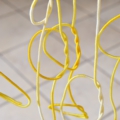 祇園祭の最後の神事となる「疫神社夏越祭」(えきじんじゃなごしまつり )が7月31日おこなわれます。これで祇園祭は幕をとじます。この半年の罪のけがれを祓い、夏以降の疫病除けを祈願する行事です。 素戔嗚尊(すさのうのみこと)に旅の宿を供して、難儀を救ったといわれる蘇民将来(そみんしょうらい)が、素戔嗚尊(すさのうのみこと)の教えに従い 腰に茅の輪を下げたところ子孫代々にいたるまで災いなく栄えたという 故事にちなみ、茅の輪をくぐる神事が伝わります。 わたしは“茅の輪のれん”をくぐることで、茅の輪くぐりによるご利益があればと、祈り、制作します。