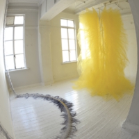 -布にひそむ表情をひきだす- という制作意図のもと、同素材で約18年制作を続けている。一枚の布の可能性がどこまであるか、そして自身の創作力がどこまでかを確かめるように一つの素材にこだわり制作を続けている。他の素材に魅力を感じる時もあるが、もう少し続けようと考えている。 タイトルのORIKATAは、紙を折って物を包む日本の礼儀作法からきているが、そのような様式にとらわれず、折りたたむ・折り重ねることで、効果的に極薄布の表情の変化をいかすことをめざしている。 時には染色行為をほどこすが、その場合は「黄」を用いる。色には様々な意味があるらしいが、私の場合は光を色にしたら「黄」になる。